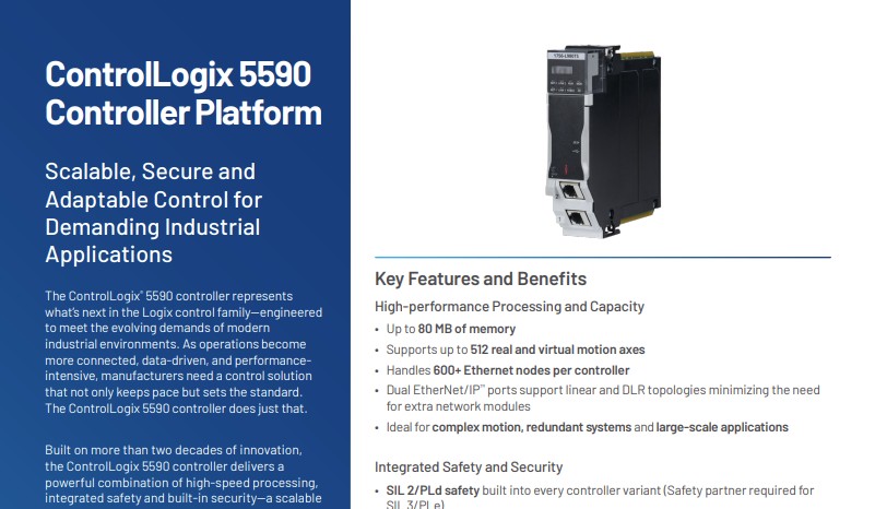 Za programiranje svih procesora serije 5590 zahteva se Studio 5000 verzija 38 ili novija.