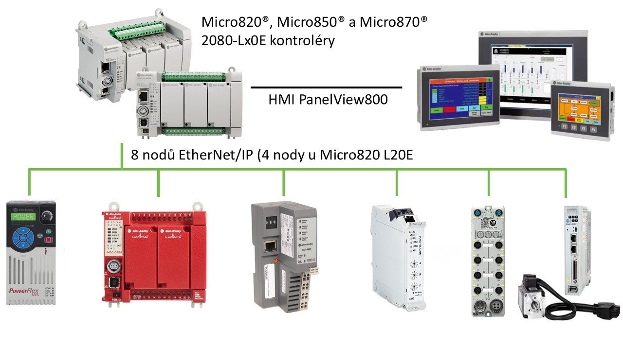 A Rockwell Automation bővíti a Micro800TM termékcsaládot az új Micro820® L20E modellel. A modell a bevált LC20 modellekre épül, megtartja ugyanazt a 20 pontos kialakítást, de jelentősen gyorsabb kommunikációt, jobb ciklusidőt és modern USB-C csatlakozót biztosít a gyors üzembe helyezés érdekében. Akár négy node-ig támogatja az EtherNet/IP Class 1 kommunikációt, így gyors I/O kapcsolatokat is képes kezelni más eszközökkel. A programozáshoz a Connected Components Workbench (CCW) 23-as verziója (alternatívaként FactoryTalk Design Workbench v1+) szükséges. A katalógusszámok tekintetében csak az elején tér el elődjétől, mivel az LC20-at L20E-re cseréli, azaz 2080-L20E-20QBB. Ez összefügg a régi LC20 modellek gyártásának tervezett befejezésével is, amelyek a következő napokban az „End of Life” státuszba kerülnek, és a piacról való teljes kivezetésük 2026 végére várható, vagy a készletek erejéig.